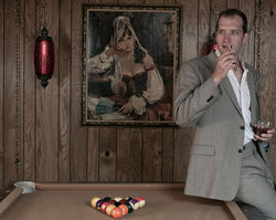 I shot this series with a Nikon D300 and a portable Dynalite strobe set. The space was cramped, there wasn't much room to maneuver the lights, resulting in lighting a bit more stark then I would normally prefer. I believe it works here, mimicking the raw fluorescent lighting found in drop ceiling lounges from the era.